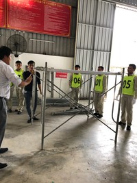 実技で使う道具を見ていると「筋力見たいからそこにある足場組ませてみよう」